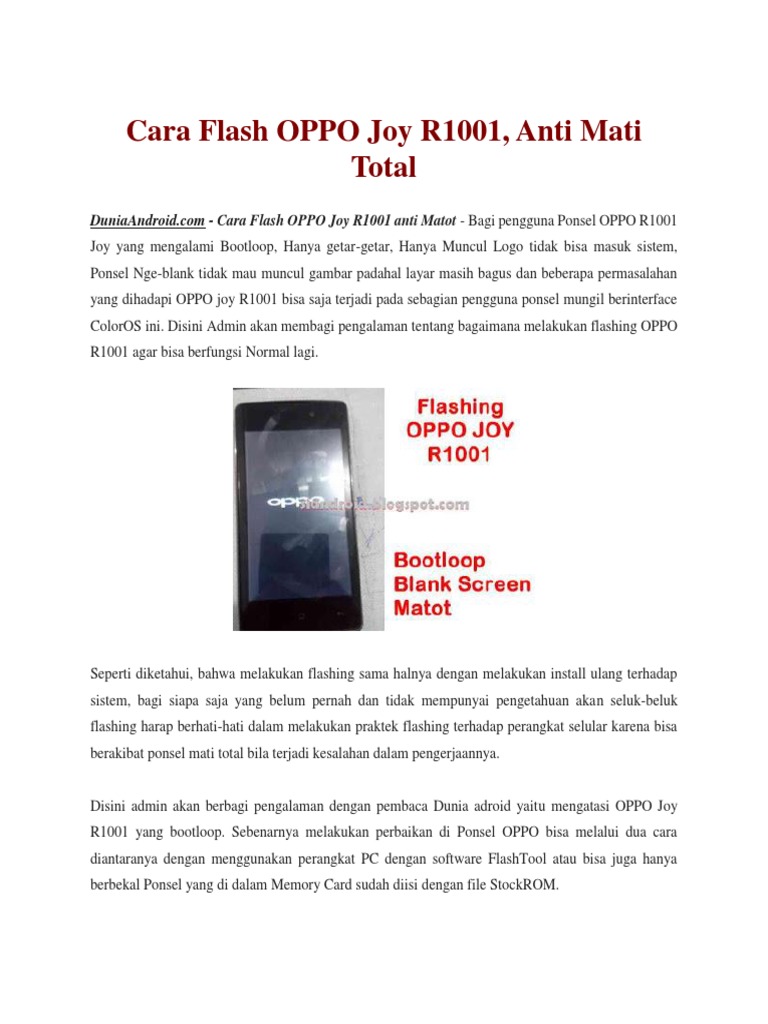Cara Flash Oppo Joy R1001 Anti Mati Total Dunia Android